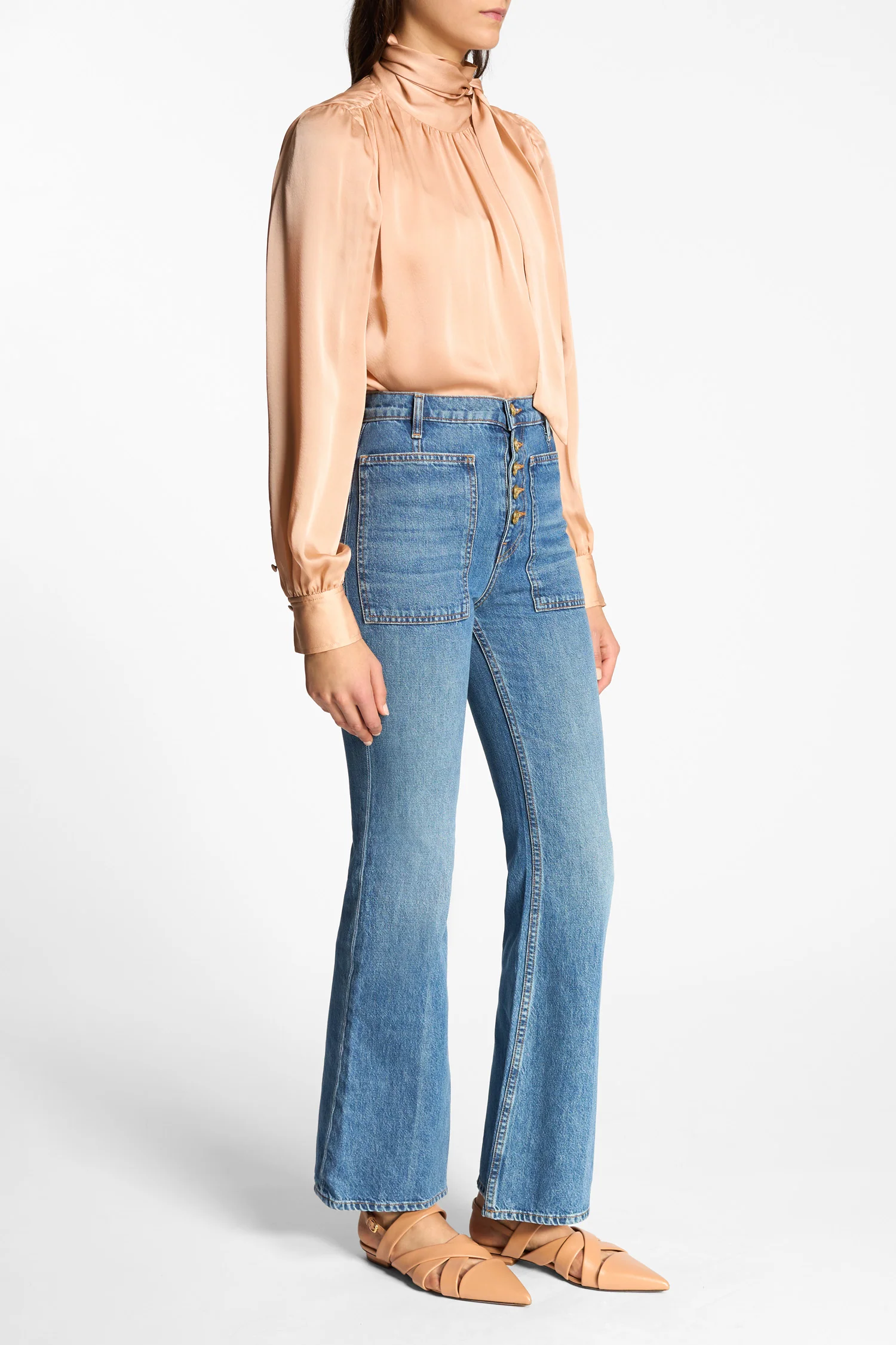 A forever-favorite silhouette, our Lou Jean is responsibly handcrafted in Los Angeles from non-stretch denim with oversized patch pockets and a vintage-inspired flared hem. This elevated essential arrives in our classic Danube wash that’s perfectly faded and whiskered, has a flattering high waist, and is finished with our signature antique brass buttons exposed at the center front.